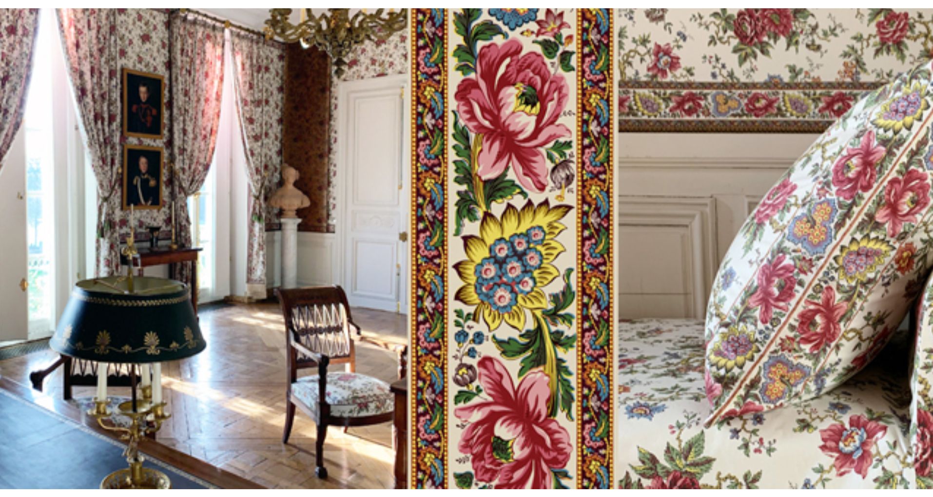 We edited again the « persian toile, large bouquets on white ground » for the private apartment of the King at Grand Trianon Palace, within the Château de Versailles. This beautiful print was King Louis Philippe’s home decor since 1836.